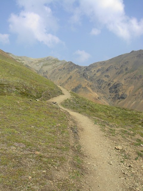 トレイルのないツンドラの広がりは凡人の記憶の中ではもっともデナリらしい景色です。ここだけでなく、ツンドラの大平原はデナリの根幹をなしているといっていいと思います。 |