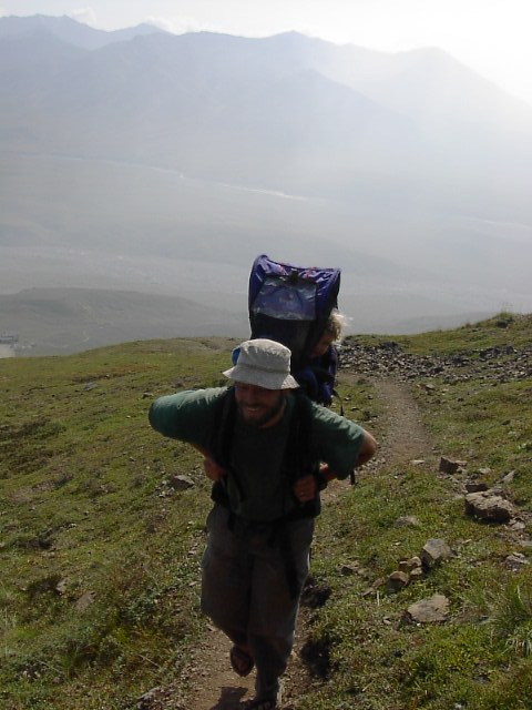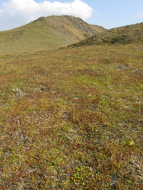 と、山のサドルの部分に出るとその向こうにはズドーンとツンドラの大高原が広がっていてびっくりしました。 |