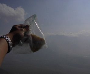 ちなみにこの年の夏は雨が記録的に少なかったためにマッキンリーを見るには(煙、風向き次第では)とても条件のいい年でした。20年の歴史の中ではこの8月は最高に見れる日が多かったのだそうです。でも、この日は見えない、凡人にはとってはガッカリでした。 |