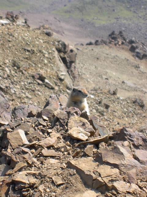 ご飯の匂いにつられてか、ななな、なーんとこんな場所に北極地リスが目の前にご登場。