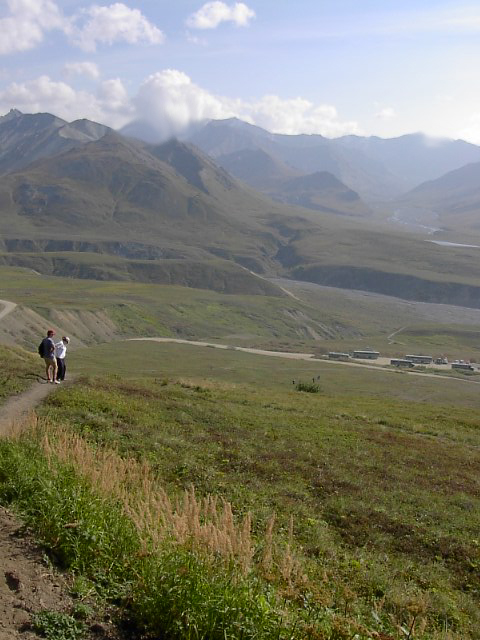 煙で景色はどうにもなりませんでしたのでこの日、別の楽しみ方をしようとレンジャーさんに聞くと、このビジターセンターの裏手の山に登ってごらんとのこと。外に出てみるとトレイルがありました。このトレイルはこの場所に来れば誰でも目に付きますが、ガイドブック、インターネット等では紹介されていません。デナリ国立公園はポリシーとしてトレイルを嫌うので紹介したがらないのでしょう。ま、とりあえず、この山頂上にチョイト繰り出しました。