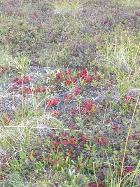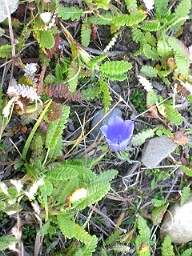 朝、お腹がへっていたので道々沢山みられたブルーベリーをちぎって食べながら歩きました。おいしかった、ブルーベリー。店頭に並ぶ奴より、ここデナリのブルーベリーは小粒で味は淡白です。小さなツンドラの花もあちこちに咲いていました。 |