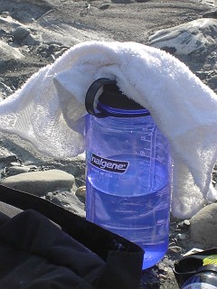 ちなみに水は近くの川の奴で十分綺麗でした。本当に透き通った水です。昼間、少し暖かくなってきたので、この水の冷たさが気持ちよくてたまりませんでした。 |