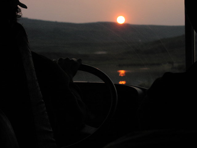 丁度、朝日があがって間もない頃の時間で、朝日に少し赤く染まりながら、山は少しずつその姿をハッキリと見せ始めました。バスに乗っていた皆が最初は