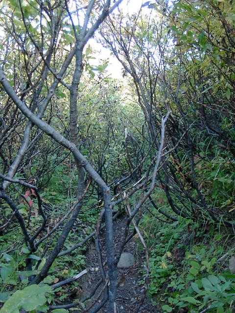 8月、アラスカの夏の終わり、秋になり行くこの季節。時間は早朝、気温は5度くらい。気持ちよかった。潅木掻き分けながら、汗だくになるのですが、5度の気温が本当に心地よかった... |