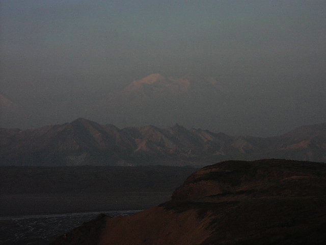 (実際には13枚上のマッキンリーの姿が凡人の見た最初で最後のマッキンリー山の姿でした。この後、マッキンリー山は煙に隠れてしまい、その姿を現わすことは2度とありませんでした。この意味で、この日の朝、わずか2時間程だけでしたが、その姿を見れたのは本当に幸運でした。) |