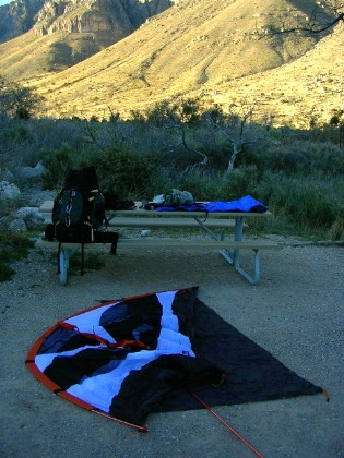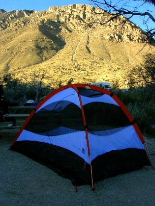 さて、とりあえずガダルーペ山岳国立公園の中心であるパイン・スプリングスという場所に戻ってきてそこにあるキャンプサイトに我が陣を築きます。キャンプサイト、山を見上げる素晴らしい場所でした。こりゃ、ここに一泊するだけでもそれだけの価値ありますね、この場所は。
