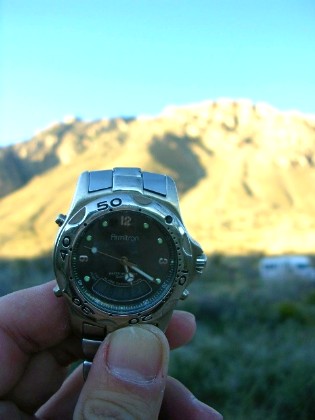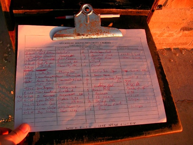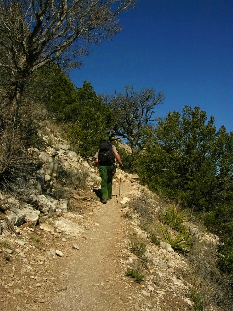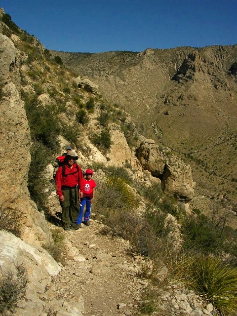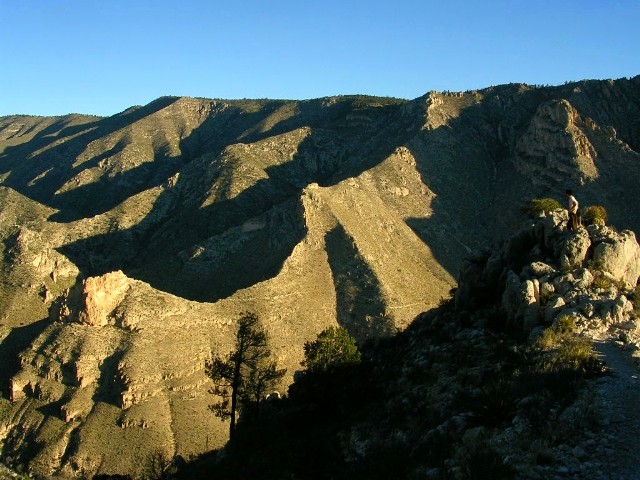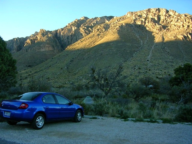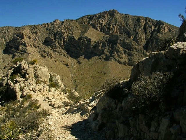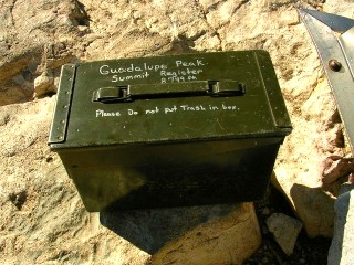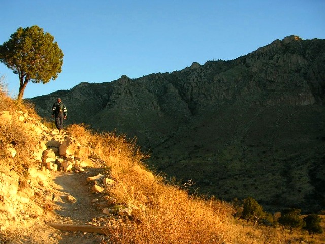 『往復8マイル(14キロ)少々で6−8時間かかる。頂上ガダルーペ・ピークは2667m。途中、水を入手できる場所はないので自分で持って行く必要があるし、十分な食料を持っていく必要がある。朝、日の出は6時半だけど5時半頃から既に明るいのでその時間から昇り始めるとよい。』