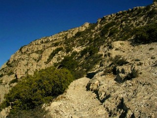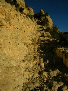 登っていくトレイルは見あげる山肌表面でスイッチバックを繰り返しています。山は絶壁のようでした。