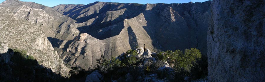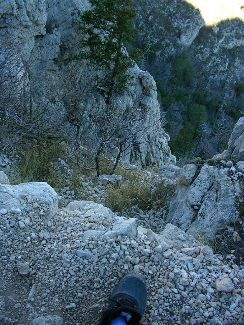 いきなり山へというのもなんですから、まず、冬場なまりきった体を慣らすために山に囲まれた平坦な場所、谷へと向かいました。Mckittrick Canyon地区といわれる公園東側の一角です。ちなみにこの場所、4時半には入り口の柵が閉まって中に入れなくなります。