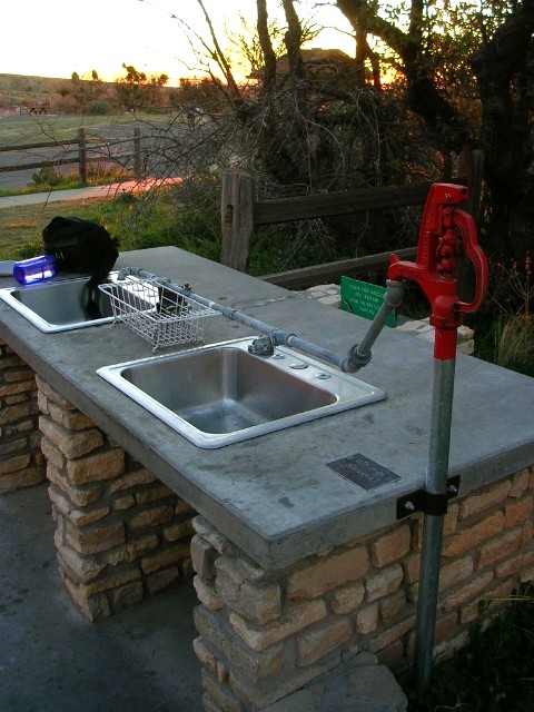 トレイル出発点のトイレ付近に手漕ぎ水道がありました。この手の手漕ぎ水道はアメリカの国立公園ではいたるところに見かけます。