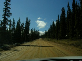 砂利道は国有林、原生林保護区等では常識です。はっきり言って悪路ですからある程度、Outdoorに慣れ親しんだ人しか入ってこないのです。それだけIsolateされた雰囲気になるので砂利道の先は凡人大好きです。30分ほど走ると針葉樹林が周囲からなくなり、剥き出しの大地、岩の登場です。 |