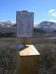 トレイルを使用する為のRegistration登録をしておく必要があります。Registrationをしておく、といっても箱の中に入った所定の用紙に必要事項書き込んで残しておくだけです。これはWilderness原生林保護区に入る際には共通の手続きです。 |