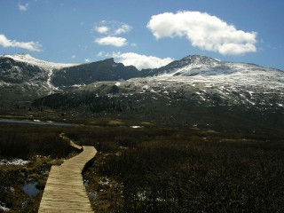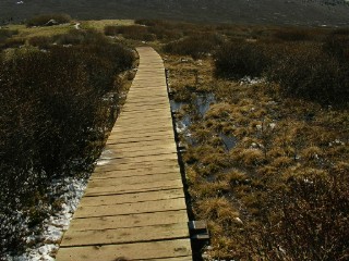 気の利いたことに板張りの歩道があったりしました。Wildernessなんだから、こんなことしなくってもいいのにと思いますが、ま、早く歩けるのは有難い。 |