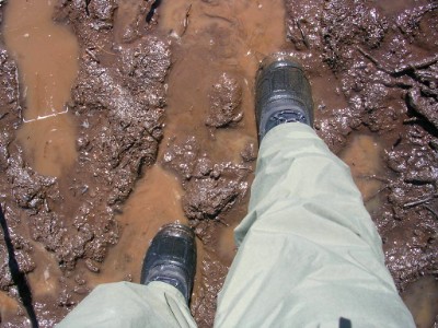 きちんと準備しとけば、泥道も水路もそれが長い道中のちょっとした変化の一部でありかえって楽しいもんです。こんなんでマイッテたらなんもできません。 |