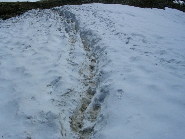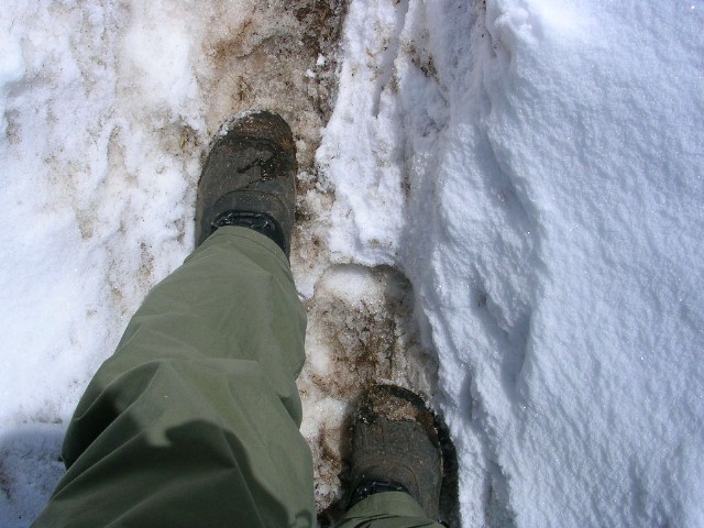 雪の広がる一角があったりで、大半の場所はビショビショ、ベチョベチョ。 |