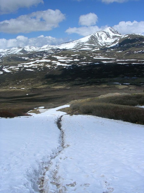 相手もさる物、簡単には頂上を明け渡しません。5月の今、まだまだこの高度では寒いのです。Iowaはもう夏の熱気なんだけどな...こうも違うものか... |