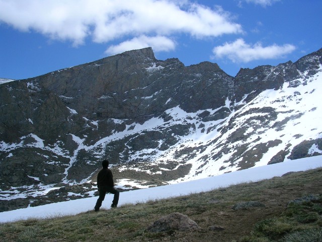 こっちは女性のソロの方ですね。アメリカの女性はフロンティア精神にあふれてます。ま、この山は4200mとはいえ難しいモノではないですから、無理ではないでしょうが、それでも女性一人でというのには感心します。こういうソロのスタイルでやる女性は例外なく白人です。他の人でソロでやってるのは見たことありません。 |