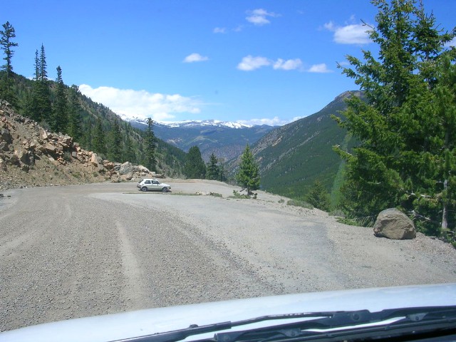 Passという峠へと至り、更に山を越えていく道路です。今回は、ちょいとココのドライブ楽しむついでに自らを高所順応させとこう、こう考えました。時間は、この日の昼過ぎまでしかありません、Iowaに午後は帰り始めなければならないのです。時間にして7-8時間ですが、出来る限りのことをやって限界に迫ろうか、と考えました。 |
