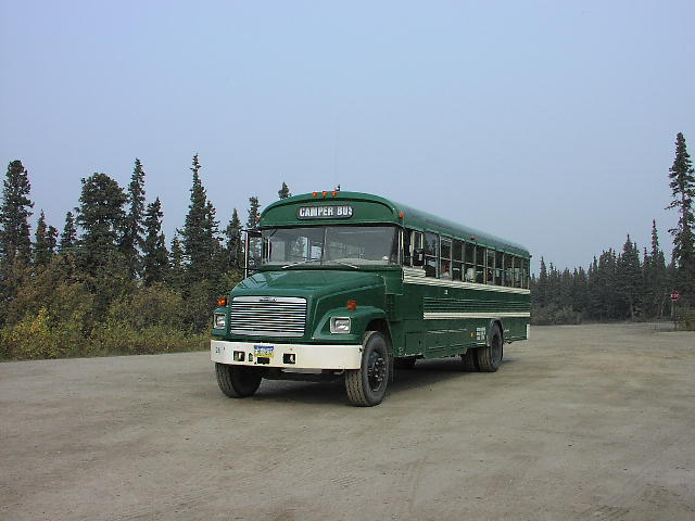 デナリ国立公園内は、National Park Serviceの運営する緑色のバスがとても役に立ちます。何種類かあるのですがこれはキャンプする人専用のバスです。キャンプする人は席があいていれば、デナリ滞在期間中バスには全てどれも乗り放題です。デナリ国立公園は園内に未舗装ですが道が一本だけ(100`ほどの奴)あります。これを中心に園内を自由に動き回れるのです。 |