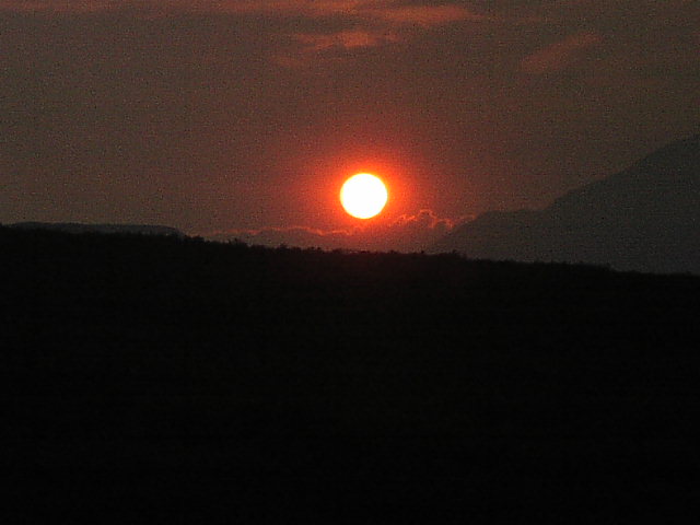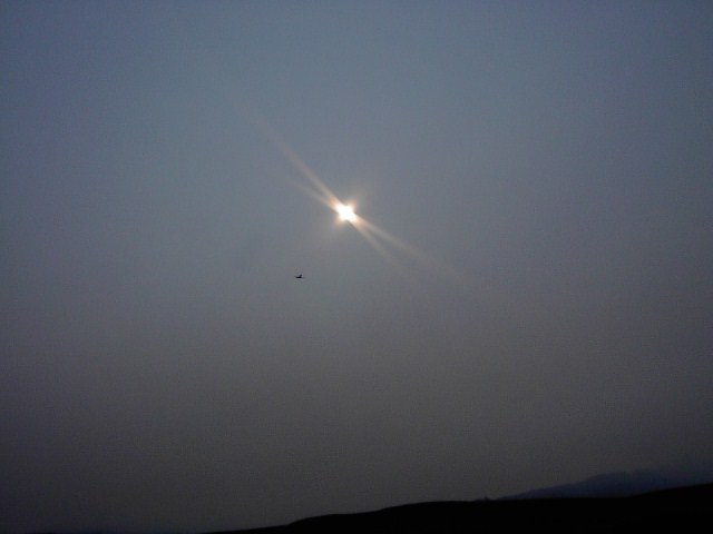 手にもった望遠鏡のズームをあげて氷河を探しました。遠くに、山と思われるものがボンヤリと見える、それが関の山でした。やはり氷河は見えません。