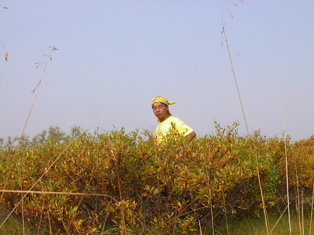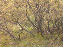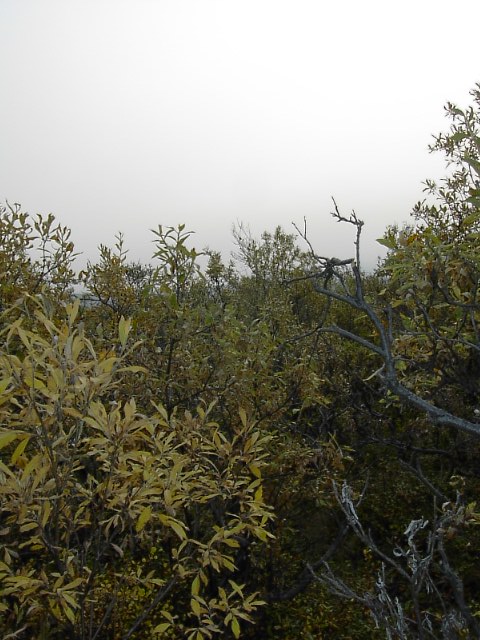10cm程の深さの地衣類があるかと思うと、それは急に30cmの深さになり、ある所では膝丈程もの深さのある潅木が自分を取り巻いたかと思うと、自分の背丈よりも少し高いくらいの(それでも2mくらいの低い)森が続いたりしました。 |