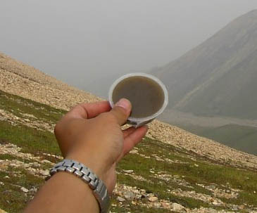 その最終地点の周囲を見渡すと右の方に空高くツンドラが山の表面を覆っている一角がありました。時間はこの時、既に午後2時、もうそろそろ引き返さなければ自分はBaseキャンプに戻れなくなります(最終のCamper's