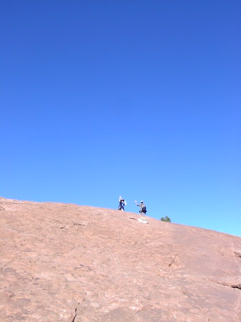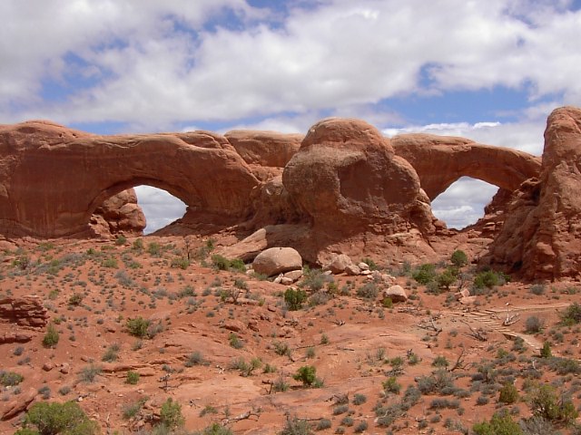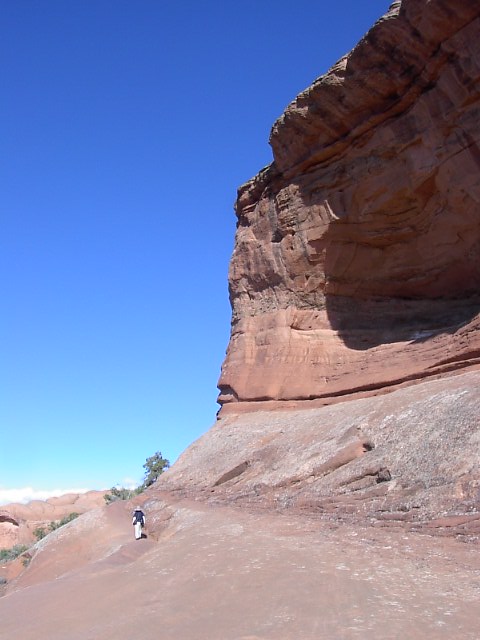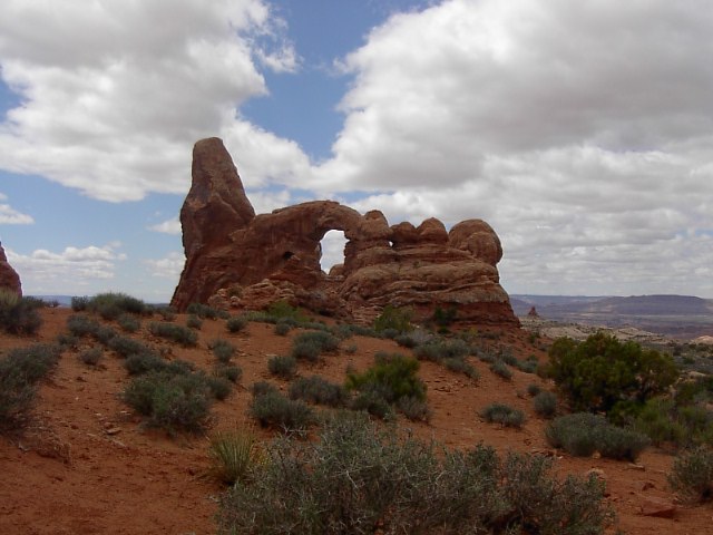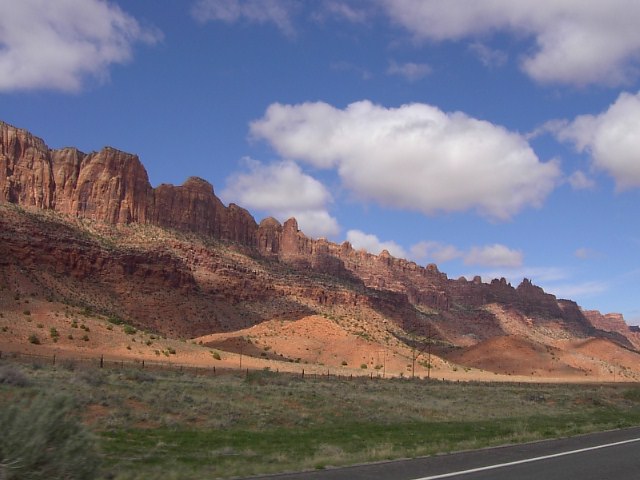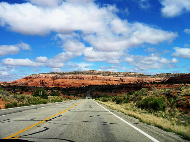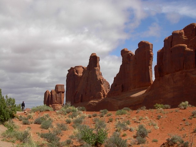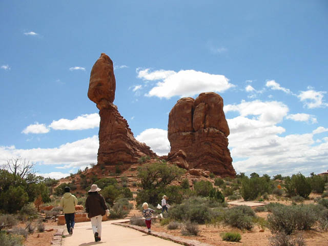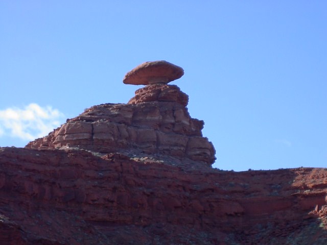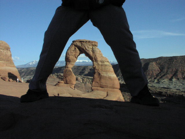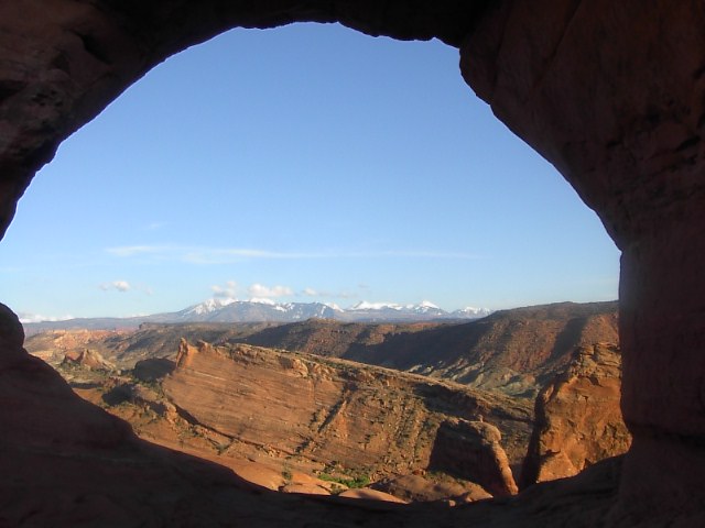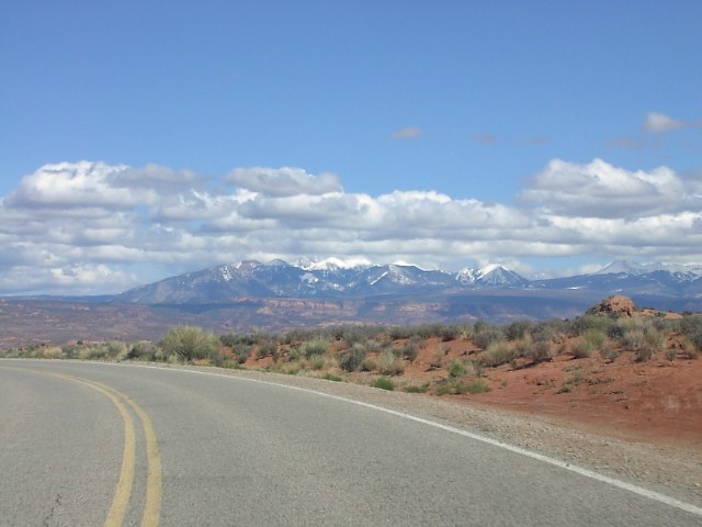 さて、グランドサークル旅行、ラスベガスを出発してかなり遠くまできました。途中の景色はIowaとは全く違う分、暇をもてあますことはありません。全て新鮮で運転していて楽しいものです。 このあたり、景色よくドライブには最適なのですが、かなり高度が高くて 道路の脇には4月と言うのに雪が積もっています。ブライスキャニオンほどではないですがグランドキャニオン、モニュメントバレー、ザイオンよりも明らかに寒い場所です。 広大な景色が目を楽しませてくれえるのはもちろんですが、道中ヘンテコリンな岩が目につきます。これはメキシカンハットといわれているそうです。 これは名前はわかりませんが、この手の奇妙な岩がアチコチニあるのです。やっぱし、この場所何かが違います。 目的のアーチーズ国立公園に近づくと左手に延々と岩の屏風のような山が連なりました。とても広大な景色をなしています。まだ、これでも公園外です。 アーチーズ国立公園内に入ります。ドライブしながら景色は更にその素晴らしさを増します。 アーチーズというところ、奇岩の集合した場所としてはナンバーワンだと思います。薄っぺらな岩が摩天楼をなすかと思えば、 今にも落ちてきそうな岩もあります。これはいつまでこの状態でいられるかわからないでしょう。そのうち落っこちると思います。 アーチーズ国立公園はその名が示すようにアーチがとても多い場所なんです。