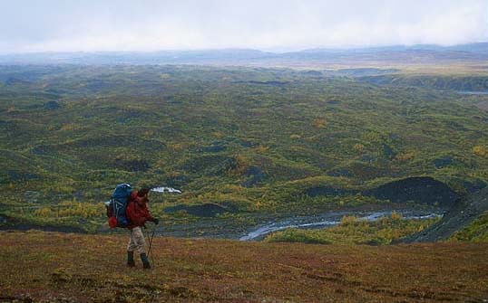 Backpacking その姿は研ぎ澄まされている。 長い年月をかけて必要最小限に洗練されてきたものの見せる姿だ。そこでは皆がプロに見えてしまう。きっとそこに足を踏み入れようと考えたその瞬間から、自分もその中のひとりとして仲間入りだ。 写真はアラスカをバックパッキングしている人の姿 あなたに想像できますか?先に人が歩いた道はおろか跡すらない、電気もない原野に自分ひとり。周囲には動物達が歩き回っていて『あ、人が歩いてるぞ。』と好奇心の眼差しを向ける。かつて原始人はこんなところを歩いて生活していたはずだ。内心自分のような素人にそれが出来るのだろうか?と内心不安はある。その不安は大切にしなければならない。この手の場所では自分しか自分を守るものはないのだから過信は禁物だ。 |