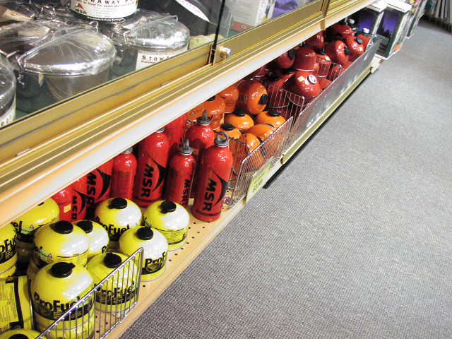 目的、目標が最初にあって、細かな心配は後でする。これは何かに挑戦する時の重要な姿勢だと。今回の予定自体がまさにそれにあたる。 写真は燃料群 『あ、これってプロパンガスだ。ガソリン(MSRとかかれた奴)もあるぞ?』 |