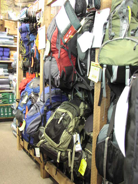 先にマッキンリーを見る安価な手段はない、と書いた。理由は徹底した非開発主義にある。この公園は人は自然の中への侵入者である、という考えのもと徹底して開発しない主義をとっているそうだ。どのくらい開発していないのか? 写真はバックパック 『いくらくらいなのかな?わ、高い!!安い奴でも150ドルくらいするぞ、高いと数百ドルだ。バックパックは全部揃えた後にいい大きさの奴を購入しよう...』 |