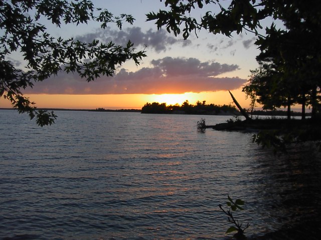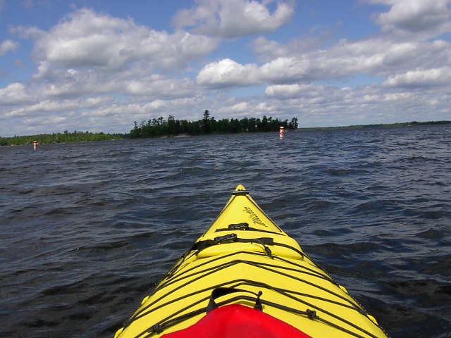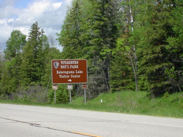 この州の人たちにとってカヌーは日常のレクリエーション道具なのです。ちなみにカヌーは店で5万円くらいから売られています。もっと安い物も沢山あるそうです。そんな値段なら場所さえあれば誰でも持てるもの、という感じです。行った先はボエジャーズ国立公園という場所です。ここはアメリカの国立公園としては唯一のWater parkです。といってもプールとかではありません。4つの湖とその上の百数十の島からなる公園なのです。公園を楽しむ手段としてはカヌー、カヤック、モーターボートのような船によるしかないのです。湖上に沢山の小さな島があるのですが何処も基本的には無人島で合計60箇所以上のキャンプサイトが準備されています。今回はこの島の上のキャンプサイトに行こうと考えました。 4つの湖うち最初はAsh riverという場所を選んだのですがそこのレンジャーさんにいわれました。