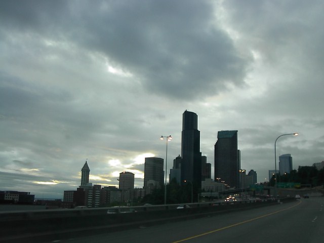 シアトルです。夕方到着時、残念なことに曇っていました。これはダウンタウン全景です。