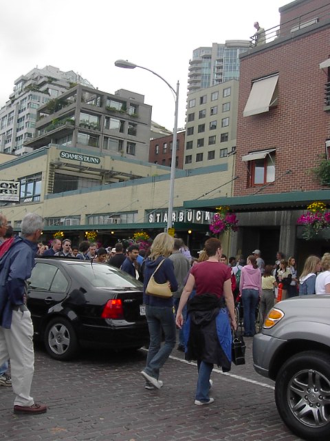 その店はスターバックス・コーヒー一号店です。確かにシアトルには非常に沢山のスターバックスの店がありましたし、他のカフェも沢山ありました。