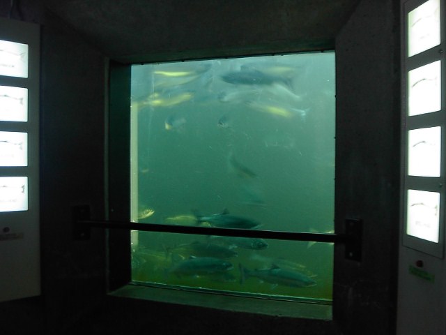 そこを通過するサーモンは水路横に作られたスペースから見ることができました。水路は狭く、湖面、海の水位差は大きいのとてもそこの水流は早いのです。驚きました。凄い数のサーモンが湖に向かってその水路を一生懸命におよいで行くのです。その懸命な姿が、なんだか神々しい感じがしました。