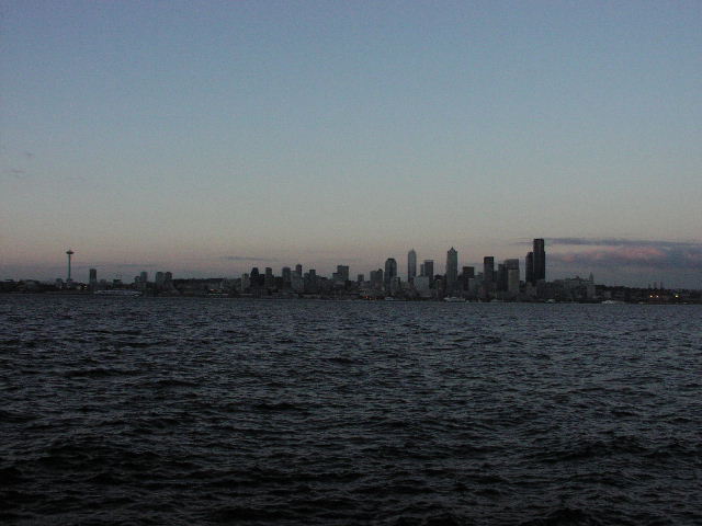 対岸からシアトル・ダウンタウンをを見た感じです。夕暮れ時、7月なのに思ったよりも寒かったぁ。