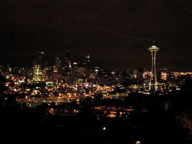 夜、暗い中に広がるシアトル、ダウンタウンです。もっと風がなければ海面に夜景がさかさまに映ることが知られているポイントだったのですがこの日は見れませんでした。それでも、ま、綺麗でした。シアトルの町の夜景です。