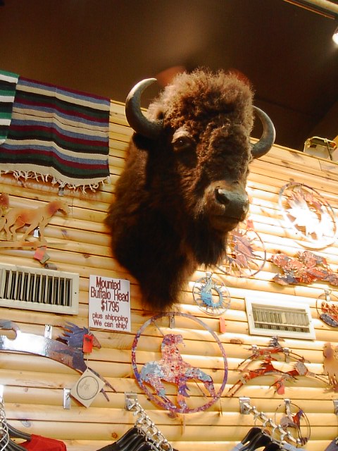 バッファローの頭ごと売ってありました。これが約日本円で20万円くらい。これを実家にプレゼントととして送ろうか...とも一瞬考えてしまいましたが流石にこれはやりすぎではなかろうか?とこの場は躊躇してしまいました。 |