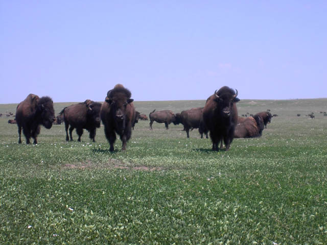 そして、この場所、South Dakotaにはとても沢山いますが、なかでもこの場所Badlandsには特に沢山いました。バイソンです。姿格好はイカツイですがとても穏やかな奴です。牛をもっと穏やかにした雰囲気といっていいのでないでしょうか?とてものんびりしていて、10mほどの距離のところに中屈みになって座り込み、しばらくボンヤリ眺めていました。