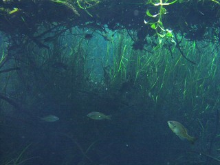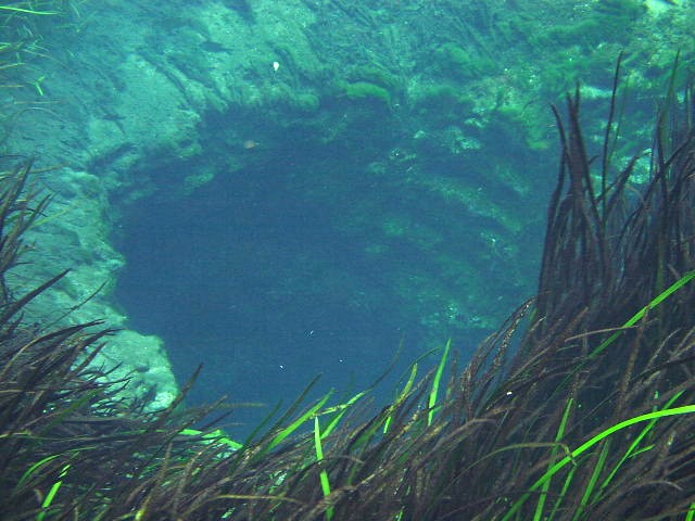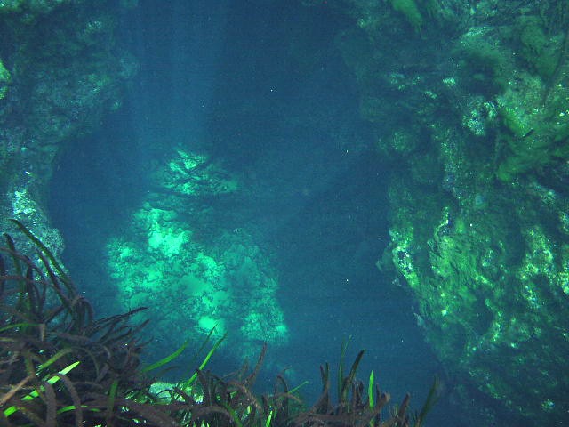 Spring Head、ここの中枢です。ここはとにかく凄まじい流水が湧き出していますので、一箇所に泳いで静止するのも少々苦労するくらいですが、真上まで接近 |