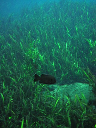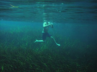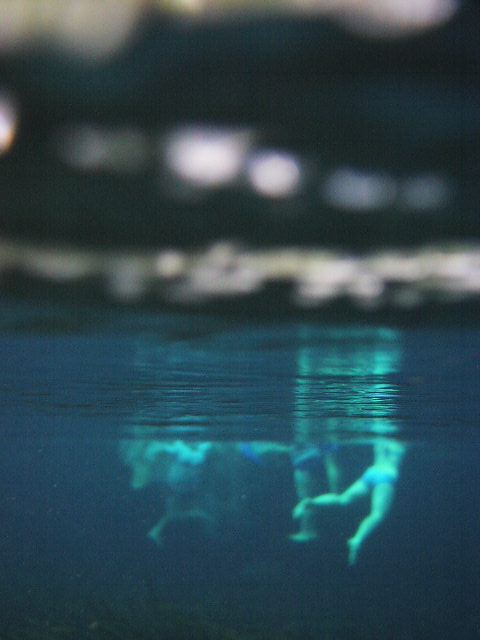 Springよりも明らかに水が綺麗です。ま、経験的にNo.1とはいえませんが素晴らしい泉の透明度で30mは楽に見えていました。泉の状況が上の書いたとおりである為にあまり沢山の人が泳いでいるわけではないことも泉の水中のスーパークリアな世界にとって条件いいようです。 |
