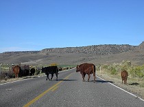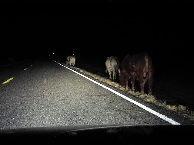 牛です。彼らは夜中、目が見えているのでしょうか?道端の草を真夜中もムシャムシャ食べています。2004年秋、ユタ州の運転途上のひとコマです。翌日のCapitol