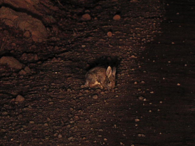 道すがら、野うさぎが自分の前をピョンピョン飛び跳ねて行きました。ウサギは目が悪いのでしょう、自分の車のヘッドライトが照らす方向に飛び跳ねていくのです。トータル5分ほど、自分の前をピョンピョン飛び跳ねていきました。まるで案内してくれているかのように...
