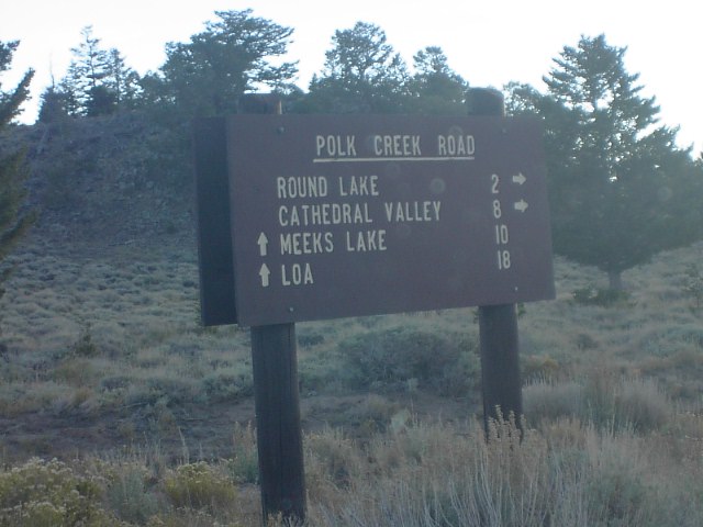 エルク・ホーンという場所のキャンプサイト目指しました。この看板から以降、未舗装道路を真夜中の運転です。8マイル=13キロくらいです。少々距離ありますがそこに向かいました。 |
