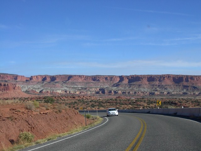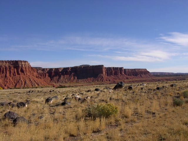 Reef国立公園の本道へと向かいました。この辺、とても乾燥していて砂漠、サバナという感じの場所なのですが、こういう場所でユタの人達は |