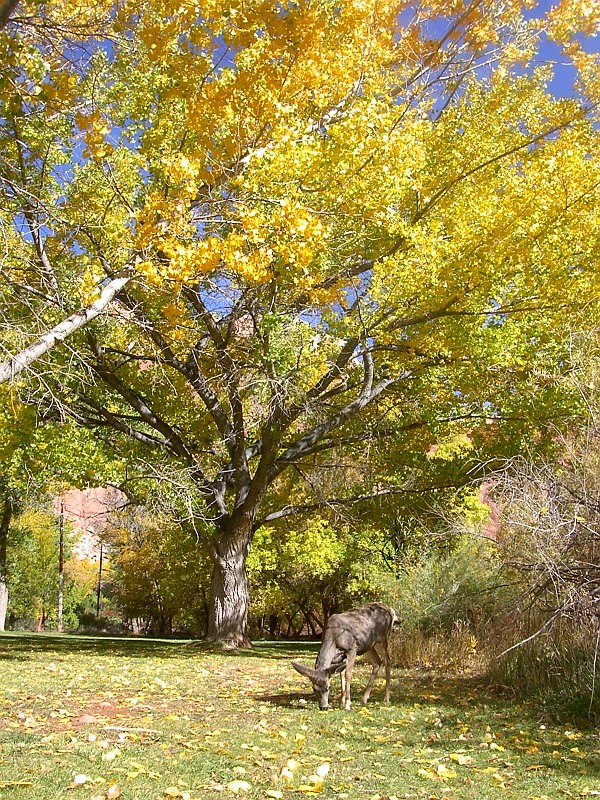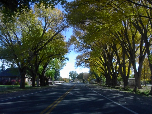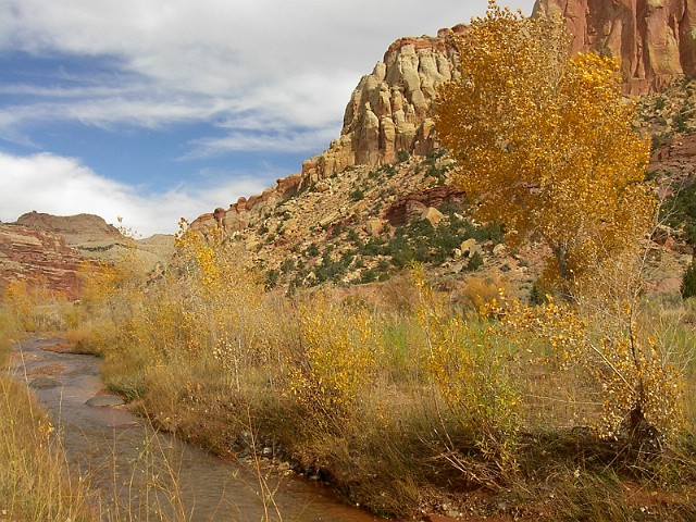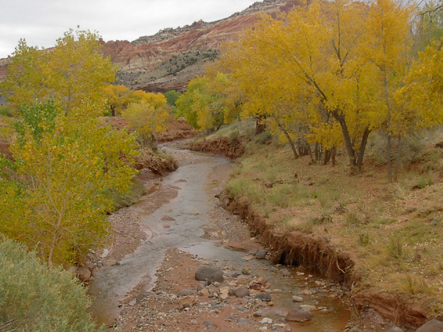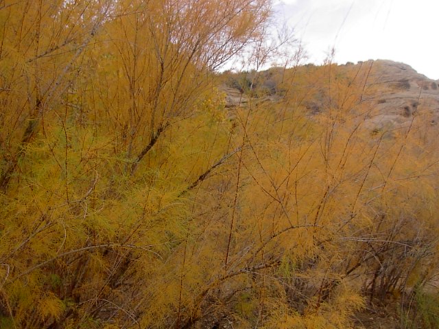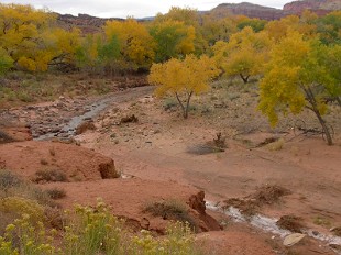 砂漠なこの場所に珍しく川があって、そこには木々が集まっていました。丁度、この場所の秋色の季節。 |