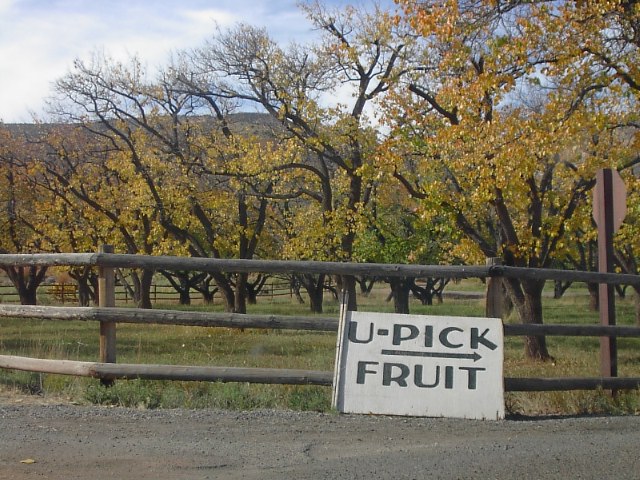 あら、途中珍しいことに果物畑が公園内にありました。時間があれば寄っていっていろんな果物を自分で取って買い取り、食べることが出来ます。季節は秋でしたのでいろんな果物の季節でしたが今回は時間がない。結局、立ち寄りませんでした。が、アメリカの国立公園で果物狩りができるのは此処だけです。 |