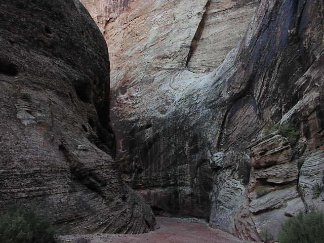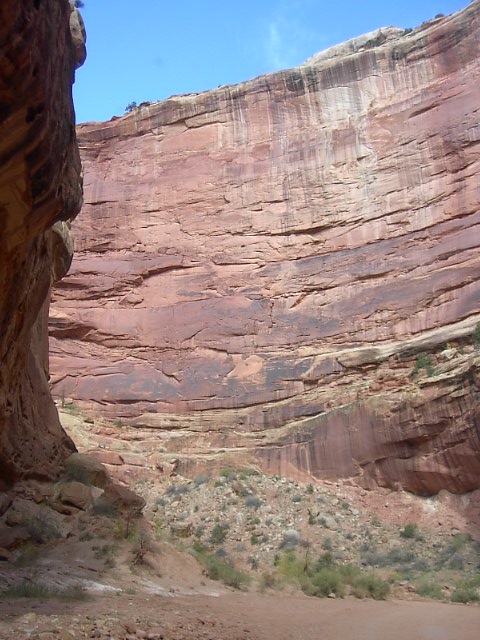 そこ岩の壁の急峻で巨大なこととといったらありませんでした。ZionのNarrowsとかより凄いんじゃなかろうか?見上げる首が疲れるんです。 |