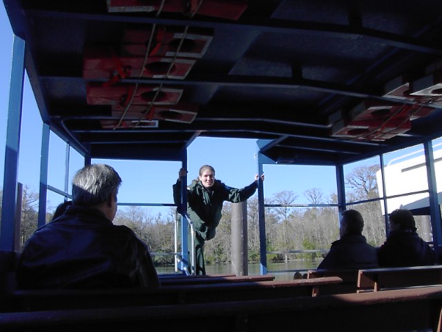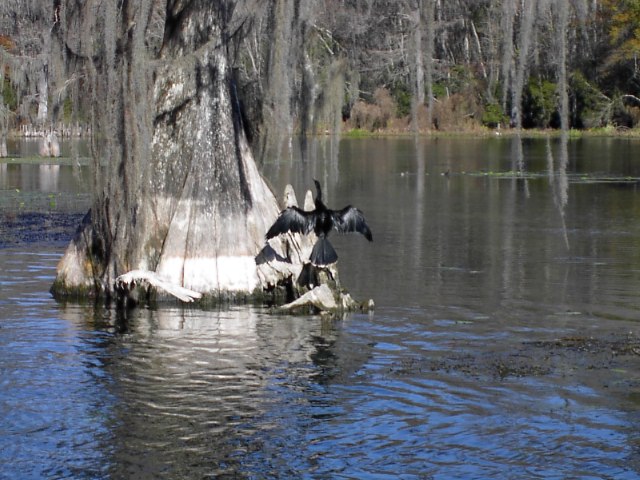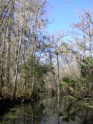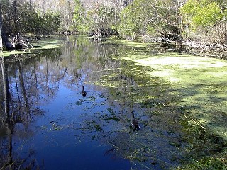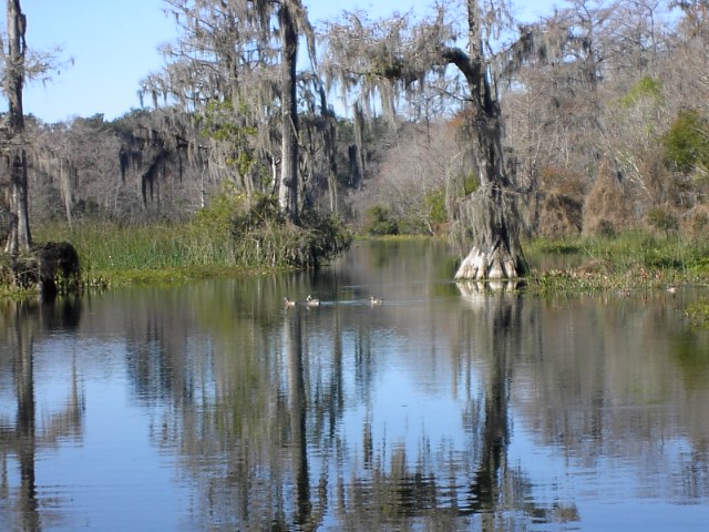 周囲はスパニッシュモスが生い茂るジャングルでした。ワニとか、亀とか、野鳥,特に水鳥とか(日本では絶滅危機種ですがトキも沢山います。)が沢山いました。よく考えればこんなのがいる場所で泳ぐ訳か?)ワニはアリゲータですから、とても穏やかな性格ですからいいですが... |