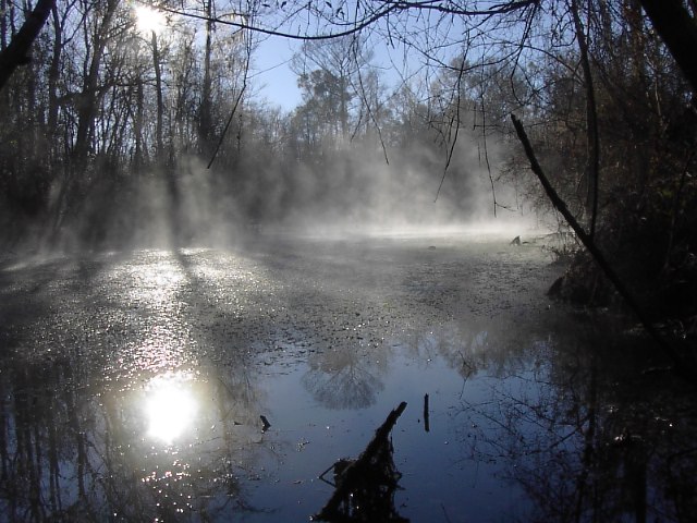 これは別の場所です。ここはフロリダの北部です。フロリダの北部はフロリダ南部とは全く違ってとても寒くなります。冬場は0度くらいになるんです。フロリダは南北に高速道路ドライブしても8時間以上かかる南北に長い州です。当然、コレだけ南と北で気候も違うわけです。この時も外気はかなり冷え込んでいて、泉からの水が湯気を立てていました。泉の水は常に一定で22度なんです。泳ぐには少々低い水温ですが泳げないこともないくらいの感じでしょうか。というか、外気にふれているよりも、泉に入った方が温かいんですね。ですから、Cave